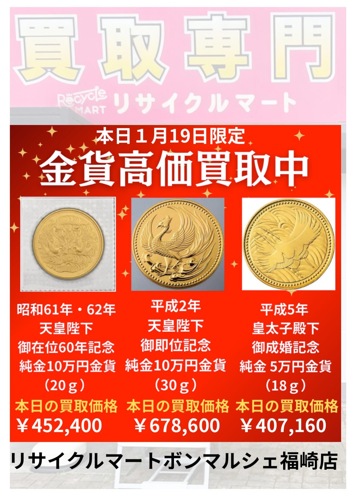 みなさんこんにちは🐴 リサイクルマート ボンマルシェ福崎店では、各種記念金貨をただいま 高価買取実施… <a href="https://www.recyclemart.jp/shop/fukusaki/info/1095495/" class="read-more">Read More</a>