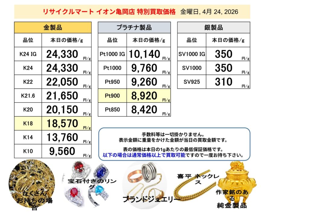 本日、2026年4月25日(土)午前10:00、イオン亀岡店1階(駅前側入口すぐ)に、「買取専門リサイクルマート イオン亀岡店」がいよいよグランドオープンいたします。