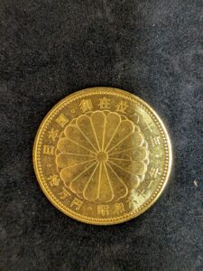 昭和天皇の御在位60年を記念して発行されたこちらの金貨は、K24(純金)で作られています