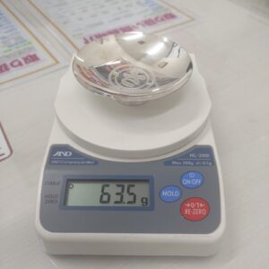 今回お持ち込みいただいた銀杯は、裏面にしっかりと「純銀」の刻印が確認でき、重量も63.5gと十分ありました。