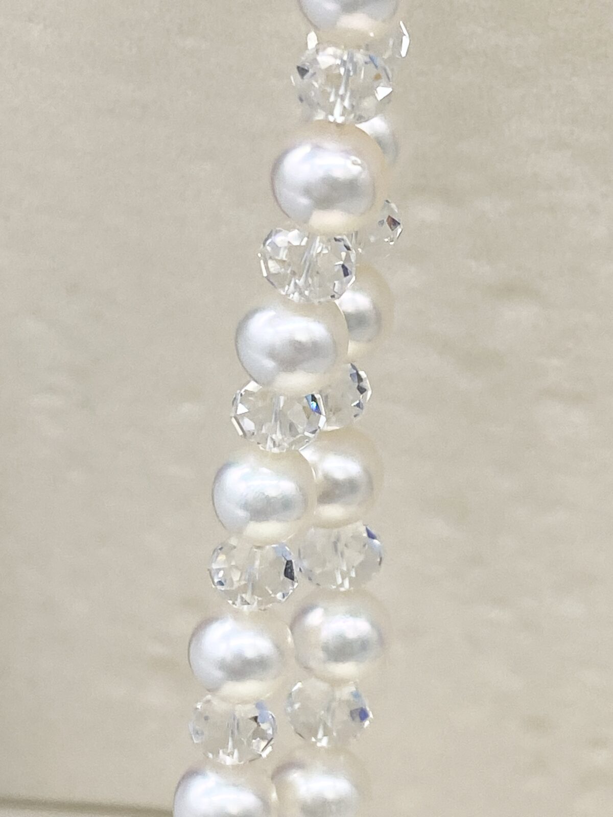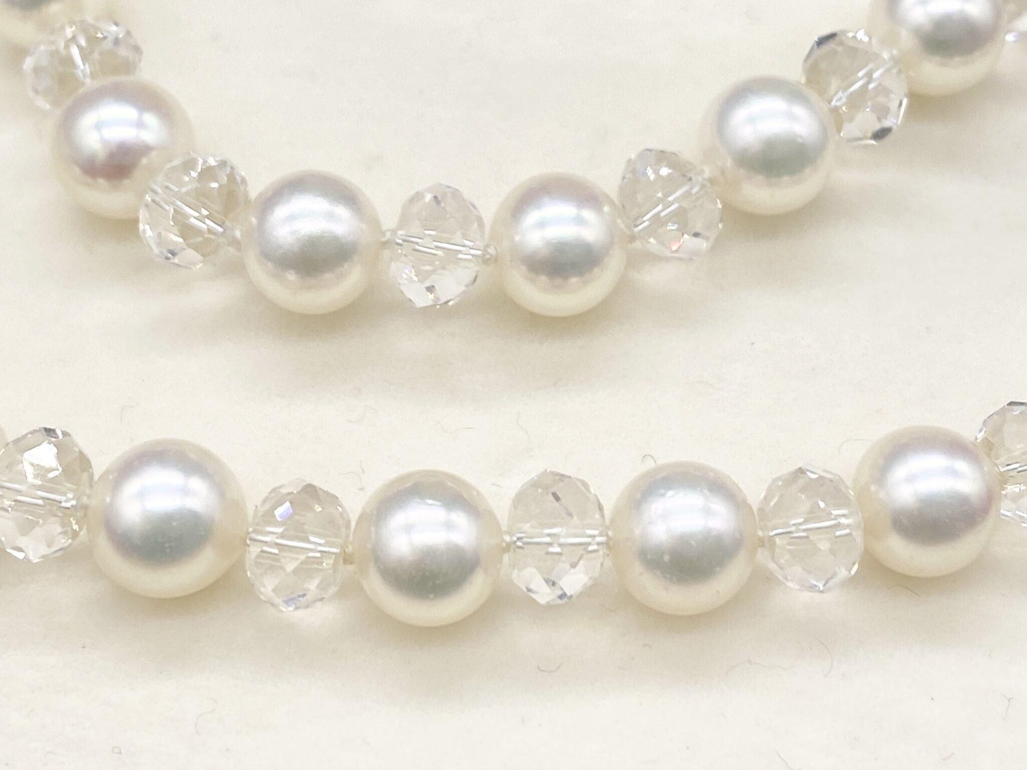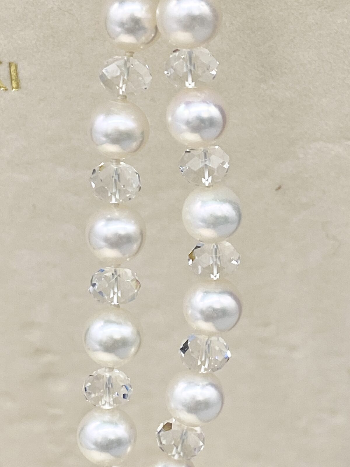 今回のお品は、パールの間に、クリスタル素材がセッティングされています。