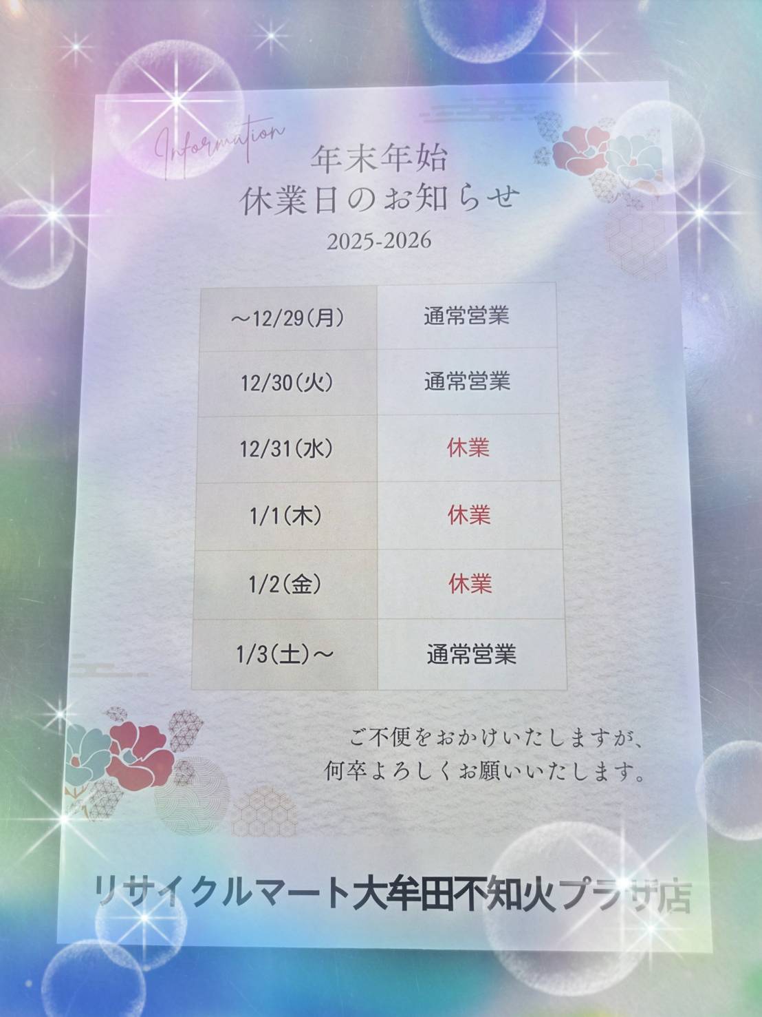 プリント こんにちは😊 リサイクルマート八女店です。 2025年も残すところあと5日・・・ 今年もあ… <a href="https://www.recyclemart.jp/shop/yame/info/1091795/" class="read-more">Read More</a>