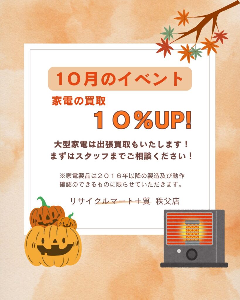 10月イベントのお知らせ!リサイクルマート+質 秩父店