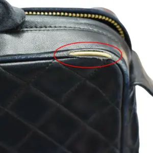 【外側】バッグの角縁にハガレがございます。バッグ全体の縁部分に擦れ、金具に変色がございますが、まだ使用できる状態のお品物でした!!