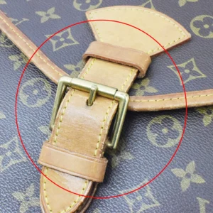 【外側】ベルト部分シワ、ヌメ革部分シミやヤケ、金具部分細かなスレがございますが、まだ使用できる状態のお品物でした!