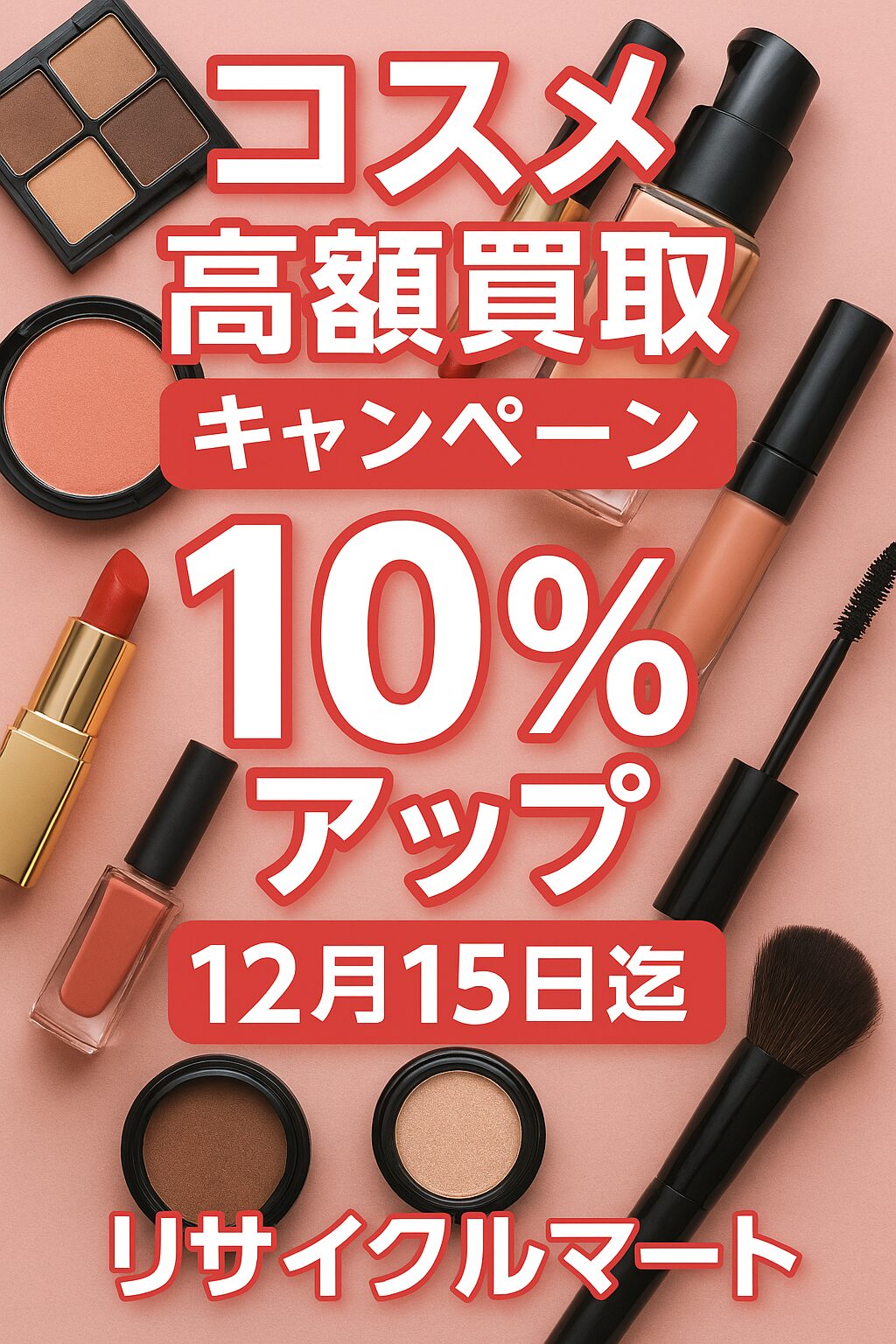 コスメ・香水の買取10%アップキャンペーン実施中!使いかけのコスメや、未開封のままの奥に眠ったままなどのコスメや香水がございましたら是非この機会にお持ちください! ご来店の際には下記のクーポンコードお伝えください。