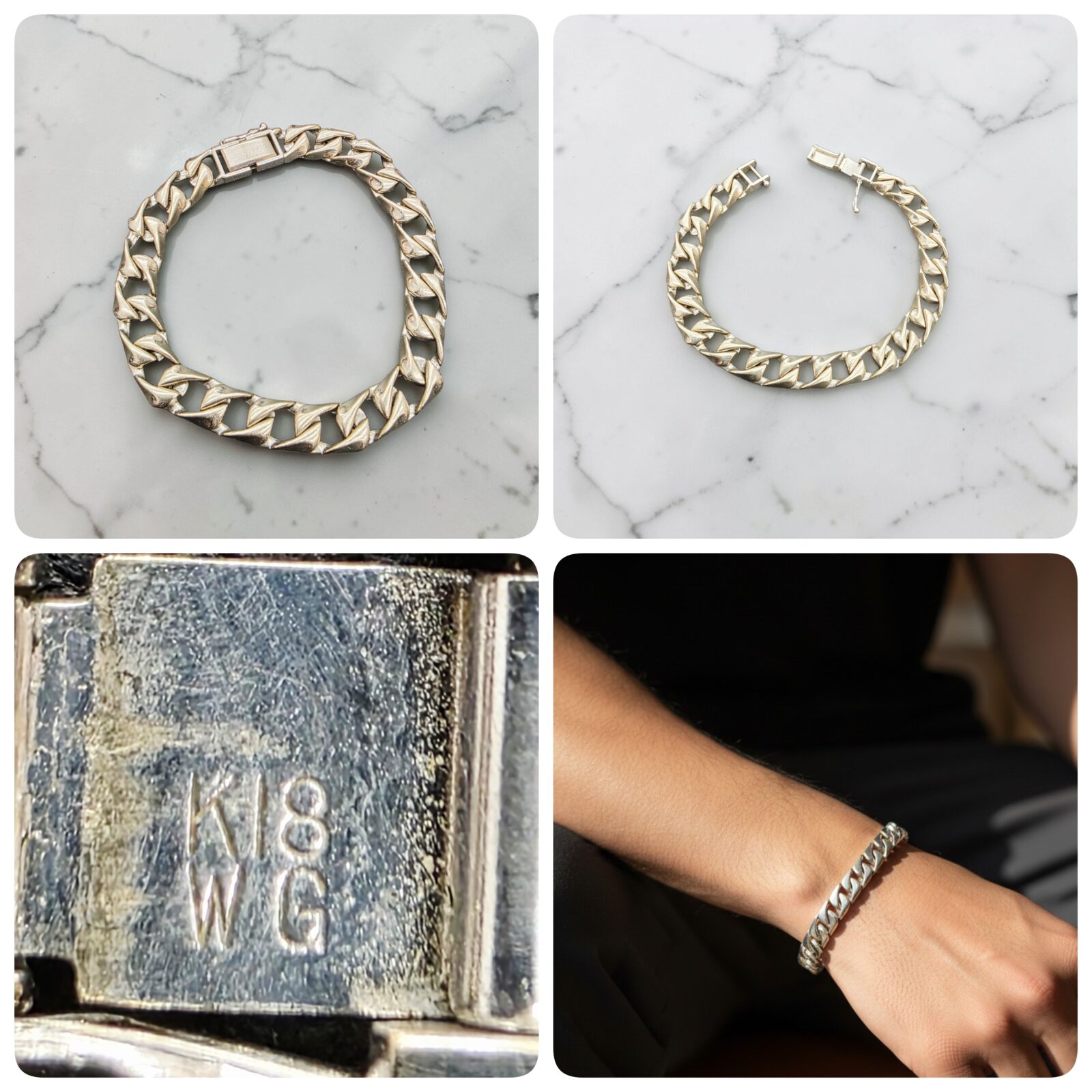 今回は、その中から特に貴重なお品物として、お客様よりお譲りいただきました「K18WG デザインブレスレットをご紹介いたします。👇️