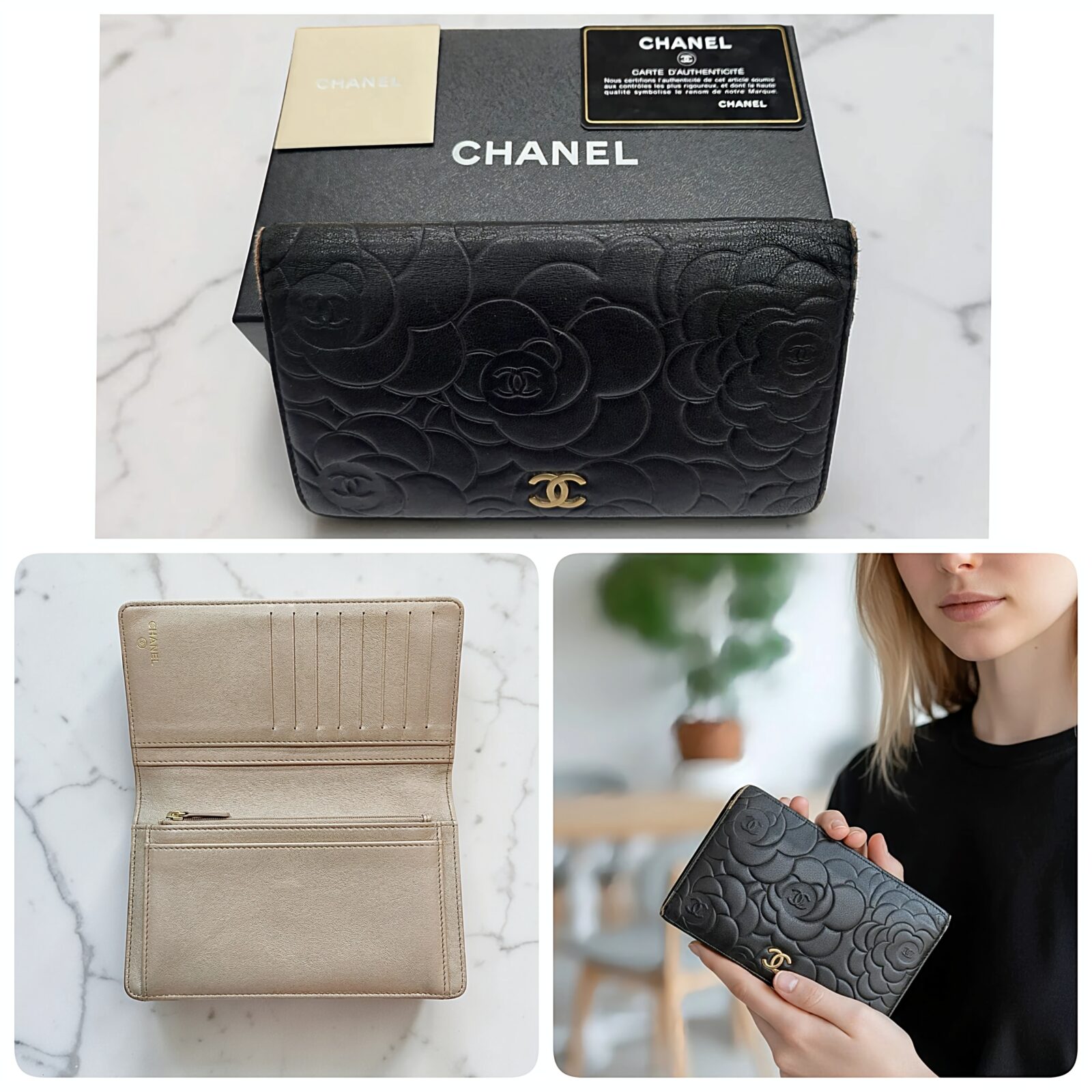今回は、その中から特に貴重なお品物として、お客様よりお譲りいただきました「シャネル カメリア 長財布」をご紹介いたします。👇️