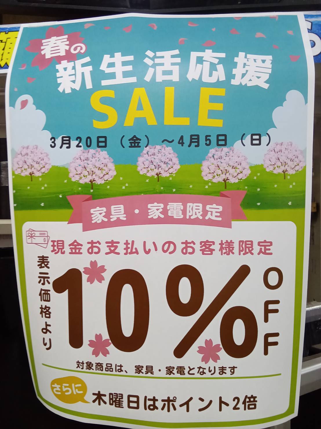 3月20日(金)~4月5日(日) で『春の新生活応援セール』を開催しています!! 家具・家電製品が1… <a href="https://www.recyclemart.jp/shop/yanagawa/info/1108475/" class="read-more">Read More</a>