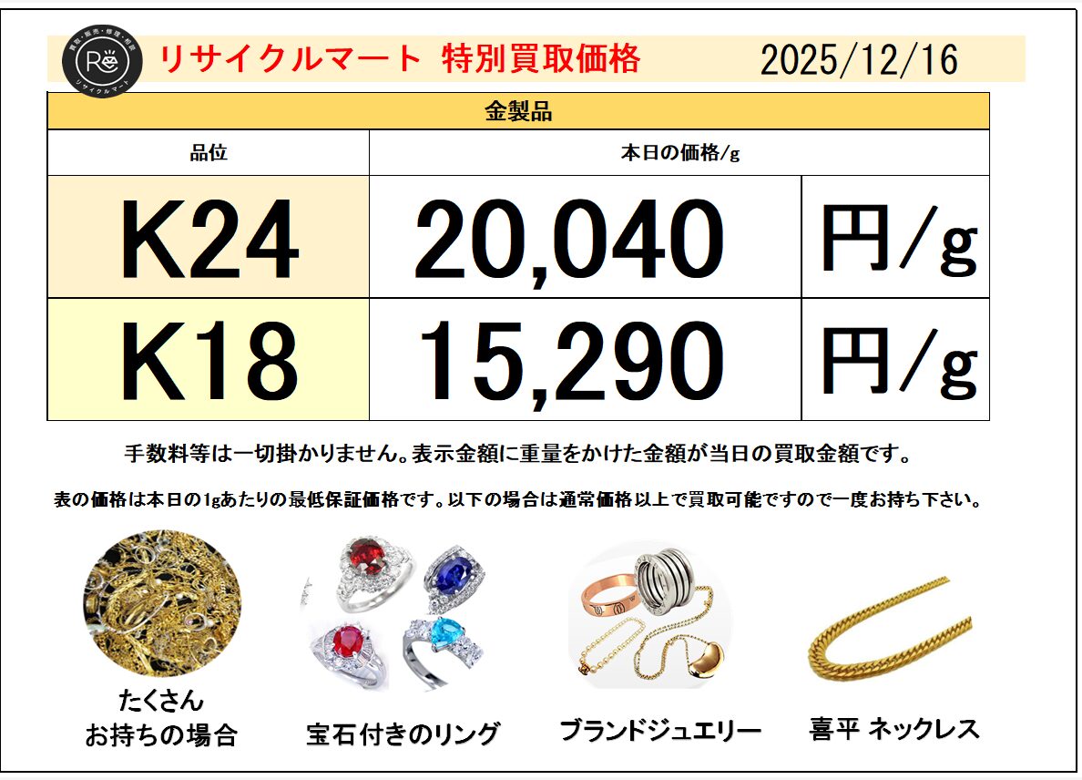 日付 2025/12/14貴金属・ジュエリー名称 K18 リング 金 ゴールド 高価買取 金高騰 即現金化 八戸買取価格396,000 円 -