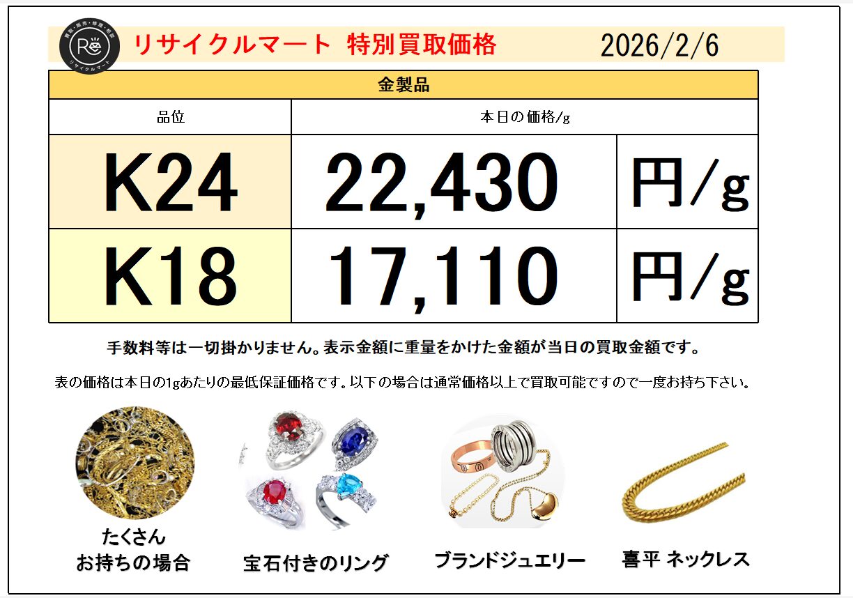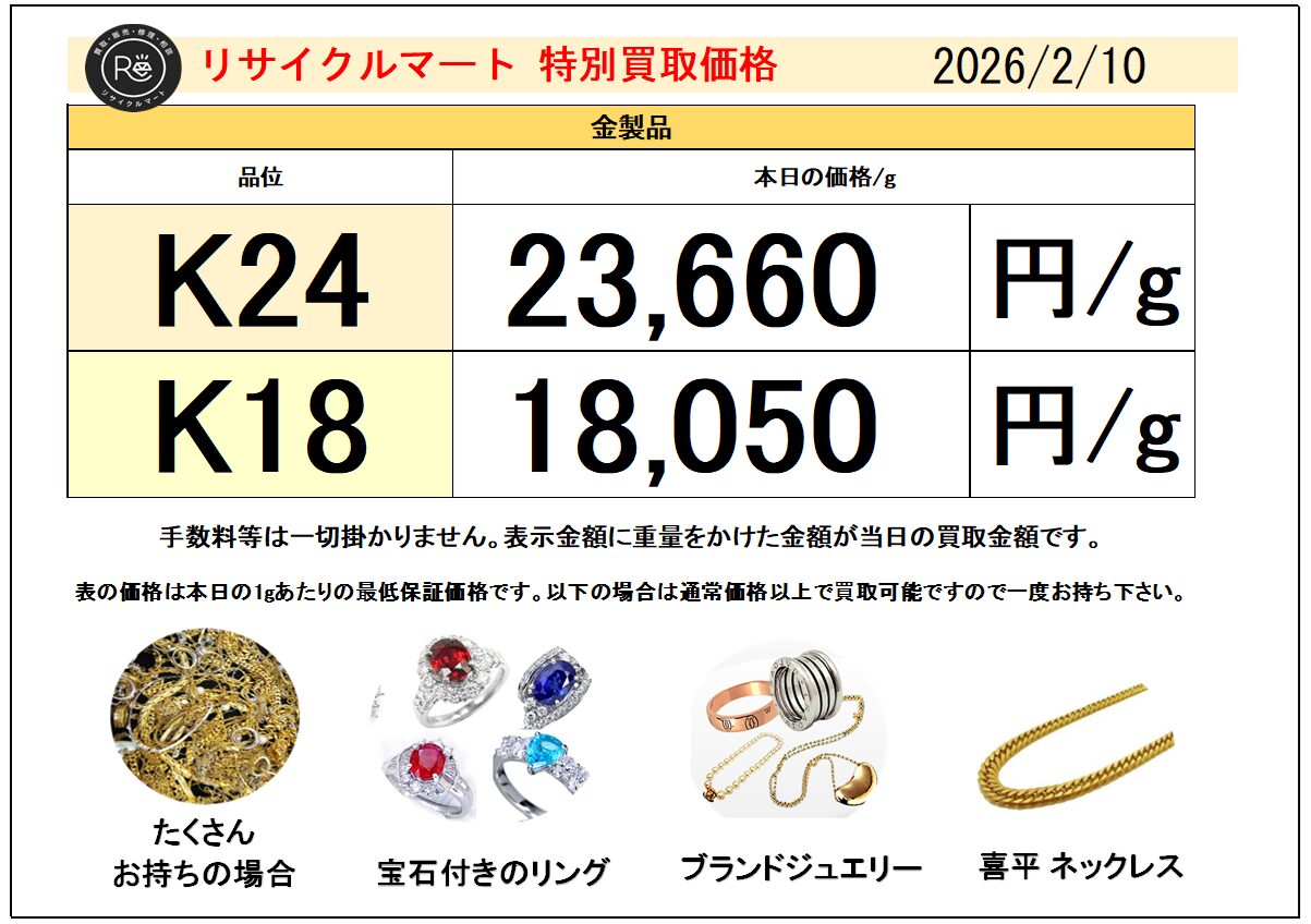 日付 2026/02/08貴金属・ジュエリー名称 K18 石付きリング 金 アクセサリー ファッションリング 貴金属買取買取価格126,000 円 -