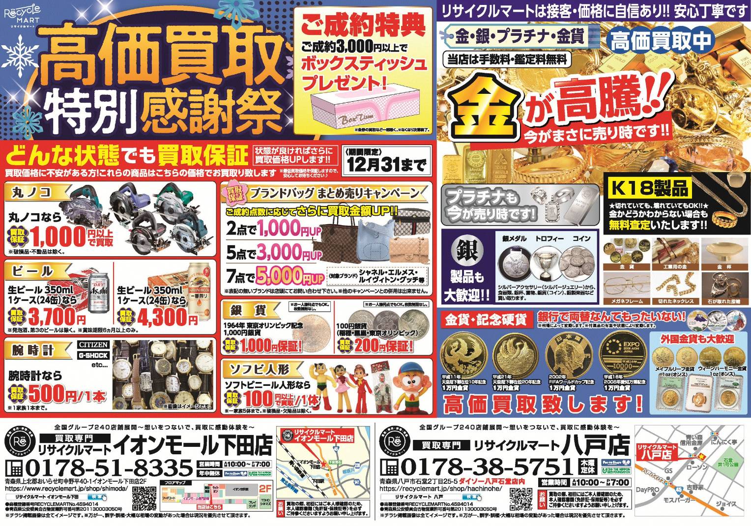 【12月限定】高価買取!特別感謝祭!(リサイクルマート八戸店イオンモール下田店 合同企画)
