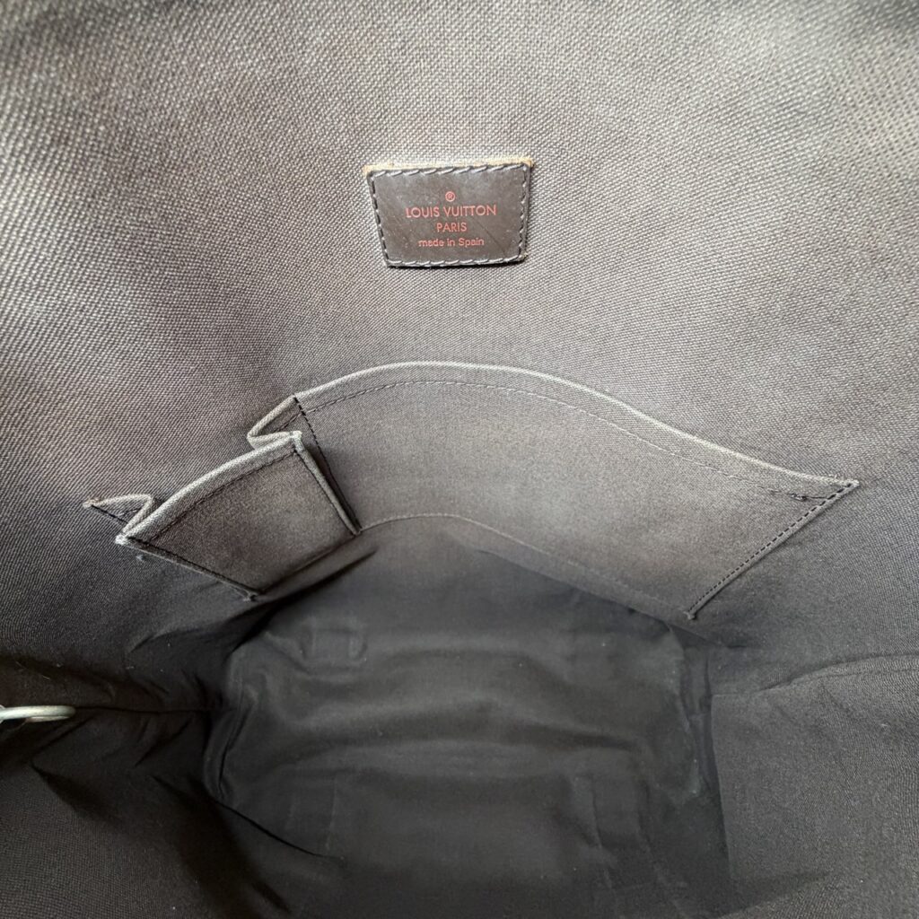 素材は、ダミエキャンバスで仕立ててあり、サイズは幅約36cmx高さ約38cmxマチ約12cmとなっており、男性・女性問わず使えるユニセックスなデザインで、ハンドバッグとショルダーバッグの両方の使い方が可能です。