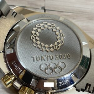 ケースバックには、2020年オリンピック 東京大会のロゴがエンボス加工で施されています。オメガ キャリバー1861搭載。