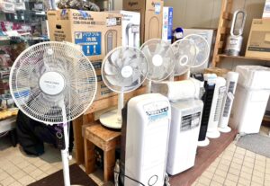当店でも店頭に並べている暖房器具を扇風機などに入れ替えました。