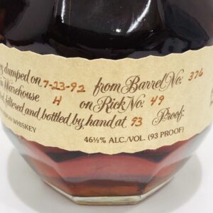 今回のお品物は1992年7月23日にボトリングされた長期熟成ボトルで、Barrel No. 376、Rick No. 49といった詳細データもラベルに記載されています。