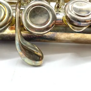 フルートは構造が精密なため、キーやジョイントなどのパーツ欠品があると大きく減額につながります。今回のお品物は変色こそ見られましたが、必要なパーツがすべてそろっていた点が高評価となりました。
