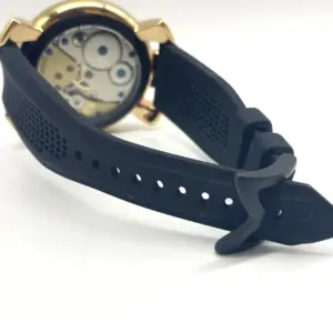 ケースや裏スケルトン周りに細かなスレやキズ、樹脂ベルトに軽度の汚れが見受けられましたが、年数やお客様からヒアリングした使用頻度に当てはめるとそれに相当する使用感のお品物でした。限定モデルである点を踏まえ、しっかりと評価させていただきました。