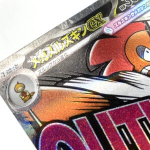 MA(メガアタックレア)は、通常のレアカードとは一線を画すデザイン性が魅力で、イラスト全体を大胆に活かした構図や、光の当たり方によって表情を変えるホロ加工が高く評価されています。プレイヤー需要はもちろん、観賞用・コレクション用としても人気が高く、近年のポケモンカード市場において注目度の高いレアリティです。