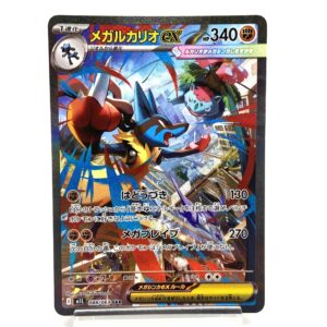さらにメガルカリオはルカリオがメガシンカした姿で、通常のルカリオとは異なる力強いデザインが特徴です。人気ポケモンのメガシンカカードという点や、SARならではの豪華なイラスト表現も相まって、コレクション性の高いカードとして注目されている一枚です。