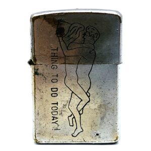 今回お持ち込みいただいたのは「ベトナム ラヴァ― カップル」デザインのジッポライターです。いわゆる“ベトナムジッポ”と呼ばれるタイプのデザインで、戦争時代の兵士が使用していたライターや、それをモチーフにした刻印デザインが特徴です。メッセージ性のある刻印や独特のデザインが施されているものが多く、コレクターの間でも人気のジャンルとなっています。