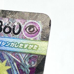 カードのフチや角に見られる白かけも重要な査定基準です。今回のカードには白かけが確認できたため、こちらも減額対象となりました。白かけは見た目の印象に直結するため、状態評価において厳しく見られる部分となります。