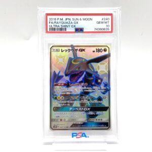 その中でもレックウザGXのSSRは、ビジュアルのかっこよさ・知名度・希少性の三拍子が揃っており、国内外のコレクターから安定した支持を集めています。また、PSA10の個体は流通数が限られるため、相場も高水準で推移しやすく、長期的に見ても価値が落ちにくいカードの一つです。
