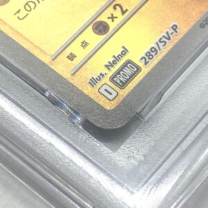 PSA鑑定品はカード本体に加え、保護ケースの状態も重要な確認項目です。今回のお品物はケースに細かなキズが見受けられましたが、透明度や保護性能に問題はなく、査定への影響はない範囲と判断いたしました。
