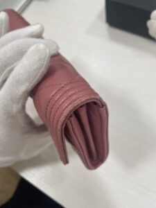 シャネルの財布の中でも、現行ライン・ヴィンテージ問わず人気を集め続けているのが「ボーイシャネル」シリーズ。今回お買取りさせていただいたのは、ピンクカラーのボーイシャネル 長財布(付属品あり/角スレあり)です。