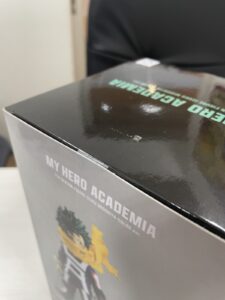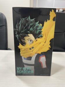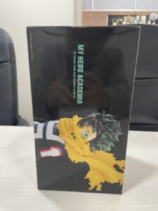 ヒロアカは国内外問わずファンが多い作品で、フィギュアの展開数も非常に多く、プライズ品からスケールフィギュアまで幅広いラインナップがあります。今回お持ちいただいたのは、未開封のデクのフィギュアで、外箱の状態も比較的良く、コレクションとしてもしっかり管理されていたことが分かるコンディションでした。