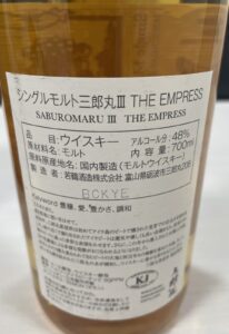 お持ち込みいただいたのは、富山県の若鶴酒造・三郎丸蒸留所が2023年11月に発売したシングルモルトウイスキー「三郎丸Ⅲ THE EMPRESS」です。