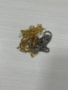 可能であれば、金、プラチナ、銀など、種類ごとに分けておくと査定がスムーズになります。ただし、画像のように絡まっていても問題ありません。当店で丁寧に分別いたします。