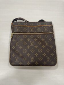 お持ち込みいただいたのは、ルイヴィトンの定番モデル「ポシェット・ヴァルミー」です。 シンプルで使いやすいフラットなデザインが特徴の、クロスボディバッグ(斜め掛けバッグ)として人気のモデルです。