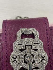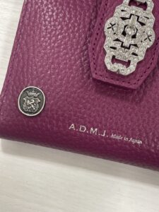 お持ち込みいただいたのは、日本の高級レザーブランド「A.D.M.J.(エーディーエムジェイ)」のガマグチ付財布です。 A.D.M.J.は「A Day in My Jewel」の略で、「私の宝石のような毎日」をコンセプトに、上質なレザーとビジュー装飾が特徴の日本製ブランドです。