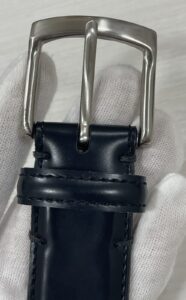 コードバンは、使い込むほどに独特の光沢と味わいが増します。 適度に使用されたベルトは、むしろ「良い状態に育っている」と評価されることもあります。