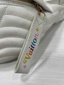 お持ち込みいただいたのは、ルイヴィトンの中でも特にモダンで人気の高い「ニューウェーブ」ラインのバムバッグ(ウエストポーチ)です。 キルティングレザーに大きなLVロゴが特徴的な、トレンド感のあるデザインが魅力のアイテムです。