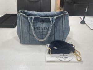 お持ち込みいただいたのは、イタリアの高級ブランド「PRADA(プラダ)」の人気カジュアルライン「CANAPA(カナパ)」のデニムトートバッグです。 カナパは、キャンバス地やデニム素材を使用した、カジュアルで使いやすいトートバッグとして人気があります。