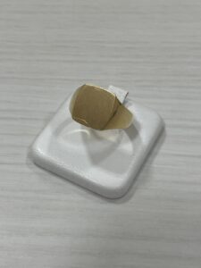 お持ち込みいただいたのは、K20(20金)製の印台リングです。 重厚感のあるデザインで、男性に人気の高い印台タイプの指輪です。
