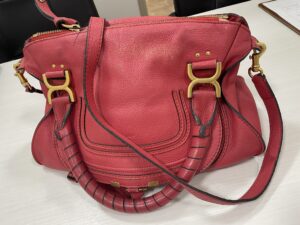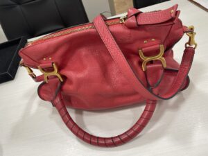 お持ち込みいただいたのは、フランスの人気ブランド「クロエ」の、マーシー(Marcie)ショルダーバッグです。 鮮やかなレッドカラーと特徴的な編み込みストラップが魅力的なデザインです。