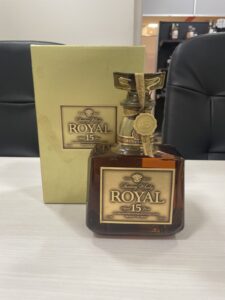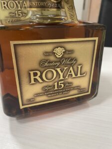 お持ち込みいただいたのは、サントリーの高級ブレンデッドウイスキー「ローヤル」の15年熟成版です。 初代マスターブレンダー鳥井信治郎氏の情熱が詰まった、プレミアムウイスキーです。
