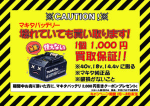 【マキタ バッテリー買取保証1000円 キャンペーン実施中!!】