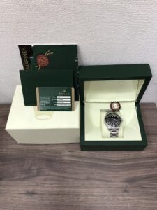 ロレックスだと特にいえることですが、箱や保存袋、コマ、保証書、オーバーホール証明書などがあると更にお値段が上がる場合が多いです。