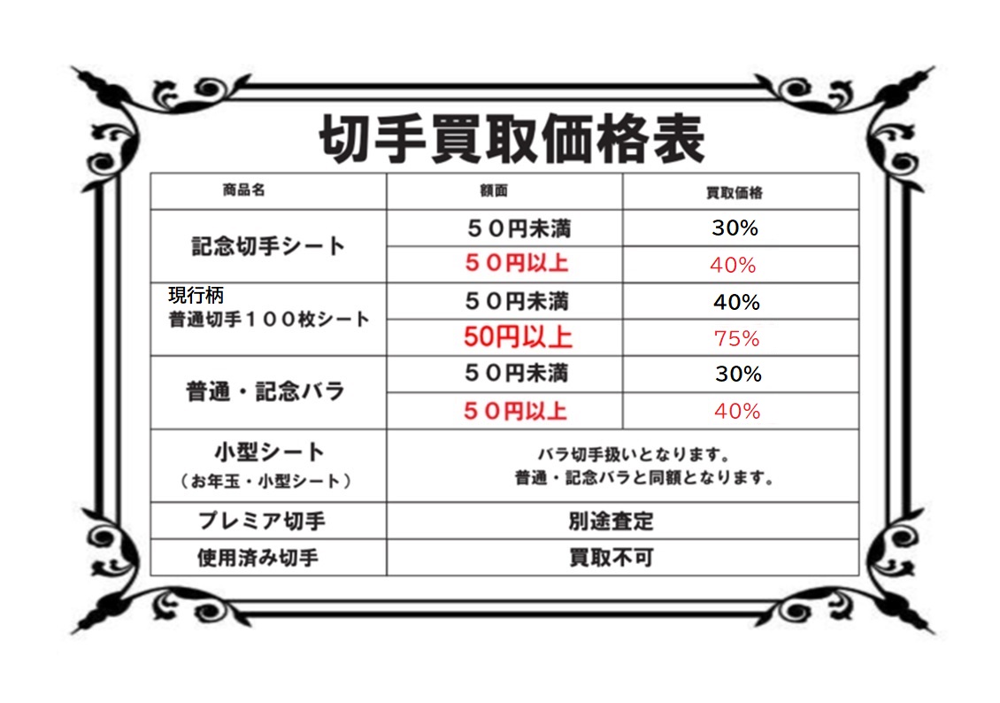 ~【切手 各種】【はがき 各種】 買取価格変更のお知らせ~