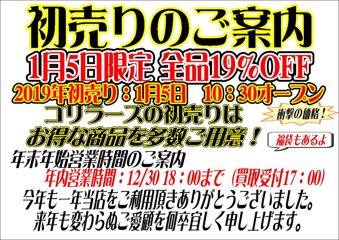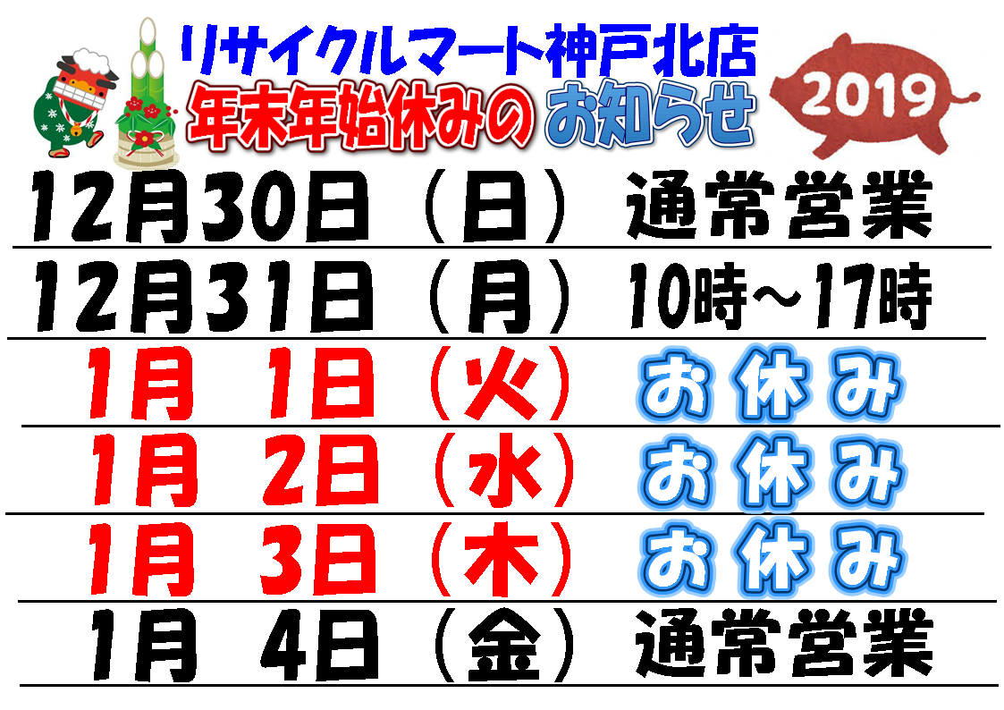 年末年始の営業時間のご案内です。 年内の営業は12月30日18時までとなっております。 12月31日… <a href="https://www.recyclemart.jp/shop/fujiyoshida/result/131175/" class="read-more">Read More</a>