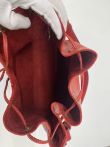 今回お持ち込みいただいた「ルイヴィトン エピ ノエ M44007」は、外観にやや角スレが見られ、底面や開口部周りに軽度の擦れ傷がございました。