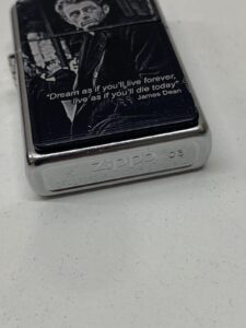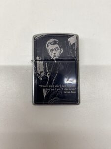 Zippoライターの中でも、特にコレクターや愛好家から高い評価を受けているのが、人物や映画、カルチャーアイコンをテーマにしたデザインモデルです。その中で今回お買取りさせていただいたのは、名優として今なお世界中のファンから愛され続けているジェームズ・ディーンがデザインされたZippo。1950年代という短い生涯の中で残した作品が数多くの人々に影響を与え、「永遠の反逆児」を象徴する存在として語り継がれるジェームズ・ディーン。その象徴性が反映されたZippoは、単なる喫煙具という枠を超え、アート性・カルチャー性・象徴性を持ち合わせたコレクタブルアイテムとして高い人気を誇っています。