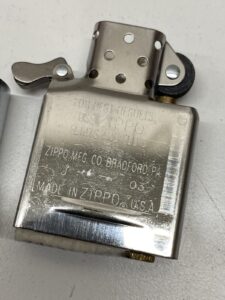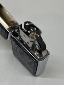 Zippoは実用品として長期間使われることが多く、火皿の煤・フリントホイールの削れ・インナーケースのサビ・底面のキズ・蓋の遊びなど、使い込みによる変化が査定に表れます。今回のお品物はこれらが比較的良好に保たれていたこともポイントです。