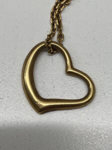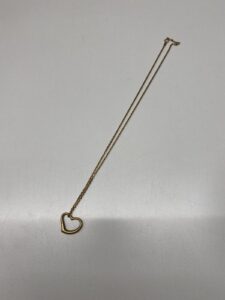 この度は、K18(18金)ハートモチーフネックレスをお買取させていただきました。温かみのあるゴールドカラーと、優しい曲線を描くハートデザインが印象的なお品物です。長年ご使用されていたとのことで、表面には細かな小傷や若干のくすみが見受けられましたが、素材価値をしっかりと評価し査定させていただきました。