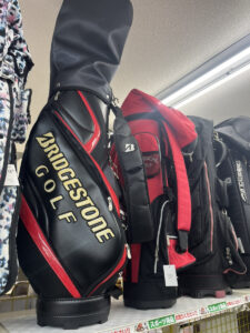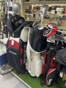 ↑キャディーバッグとゴルフクラブセットの販売も行っています。