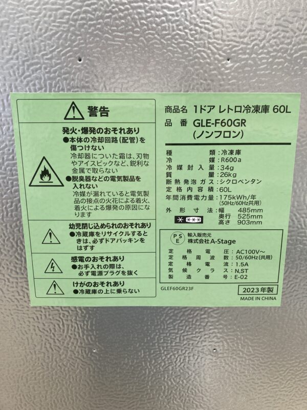 今回は【レトロデザイン/Grand Line/60L冷凍庫/GLE-F60GR/2023年製/グランドライン】をお買取致しました!!